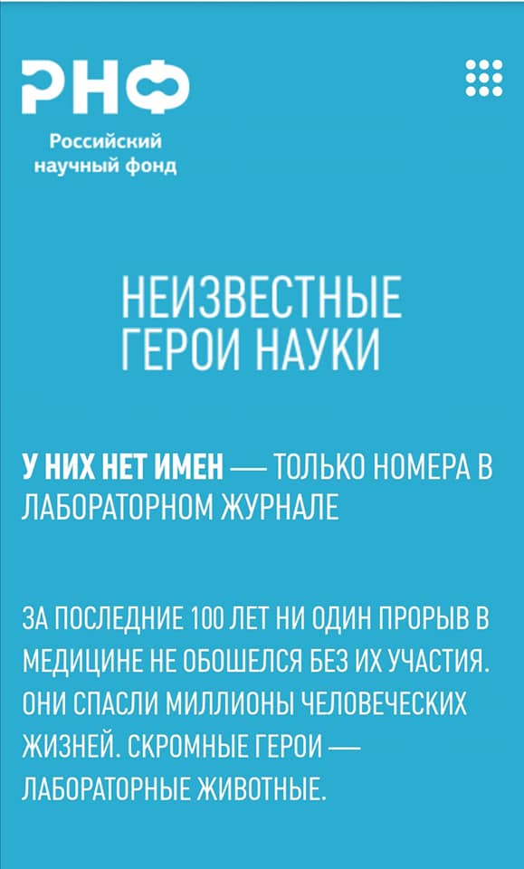 Проект «Неизвестные герои науки» – своего рода наша благодарность маленьким героям. Рассказывая о них, мы поможем людям узнать, какой огромный вклад животные вносят в науку и нашу жизнь», – рассказал заместитель генерального директора РНФ Андрей Блинов.